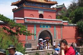 南天门位于泰山十八盘的尽头,是登山盘道顶端,此处双峰夹峙,仿佛天门自开。由下仰视犹如天上宫阙,所以取仙境场所命名。穿过南天门就是泰山山顶,登山行程正式完成.南天门分上下两层。下层为拱形门洞,上镶石匾额“南天门”,两侧镶石刻对联:“门辟九霄仰步三天胜迹,阶崇万级俯临千嶂奇观。”