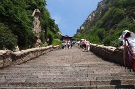 十八盘是泰山登山盘路中最险要的一段,也是泰山的主要标志之一,更是泰山最值的一走的景点。从对松山谷底至南天门的山路统称为“十八盘”,共有1600多级台阶。前393级称慢十八盘;中767级为不紧不慢十八盘;后473级为紧十八盘。当地有“紧十八,慢十八,不紧不慢又十八”的顺口溜。