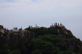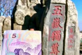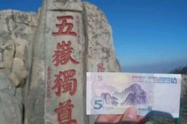 “五岳独尊”景观石群,位于泰山极顶玉皇庙东南,海拔1545米。历经百年沧桑的“五岳独尊”四个字是正楷书体,系清光绪丁未年间(公元1907)年由玉构题书,摩崖高210厘米,宽65厘米,大字径55x42厘米。在其左侧有楷书“昂头天外”题刻。“五岳独尊”历来被视为显示泰山崇高地位的标志性赞语。新版人民币五元币的背面就是此图案。