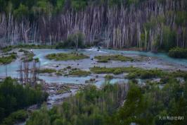 神仙湾位于新疆阿勒泰地区布尔津县喀纳斯景区,是喀纳斯湖在山涧低缓处形成的一处浅滩。这里的河水将森林和草地切分成一块块似连似断的小岛,人称神仙湾。