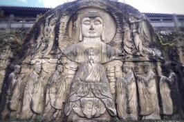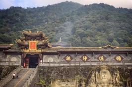 灵山寺始建于清代乾隆年间,是冕宁县如今规模最大的宗教寺院。主体建筑大雄宝殿,宽敞宏大,结构庄严,前殿正中供奉释迦牟尼,两边是十八罗汉,后殿供奉灵山寺开山祖悟真和尚杨学信木刻偶像。面对大佛是坐着的韦陀护法神像。据说,天下的韦陀都是站立姿势,唯有灵山寺的韦陀是坐像,因为灵山寺本来清净,不劳韦陀虎视眈眈地站着护法。