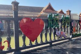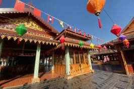 湄公河六国水上市场位于大金塔的东南面,在这里可以买到中国、泰国、缅甸、老挝、柬埔寨、越南这六个国家的特色商品,也可以品尝到各国美食,比如种类齐全的热带水果。六国水上市场里还有不少酒吧,可以选择坐在靠窗的座位,点上一杯小酒,看着夜色与湖面交响辉映,多么惬意。