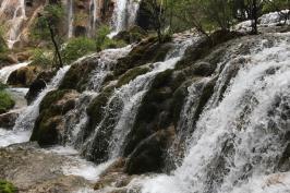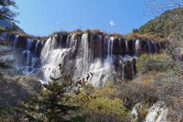 诺日朗瀑布位于诺日朗游客中心附近,是中国大型钙化瀑布之一。瀑布宽270米,高24.5米,也是中国最宽的瀑布,众多的影视剧曾在这里取景,包括中央电视台1986年版电视剧《西游记》的片尾就是在这里拍摄的。2017年8月地震被毁现在已经修复开放。在观景台上,瀑布全景尽收眼底,秋季时,瀑布的三百米飞流在秋色、云雾的衬托下,化成了一幕波澜壮阔的画面。