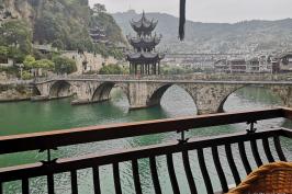 前往镇远古镇,镇远古镇是贵州省黔东南苗族侗族自治州镇远县名镇,位于舞阳河畔,四周皆山。河水蜿蜒,以“S”形穿城而过,北岸为旧府城,南岸为旧卫城,远观颇似太极图。