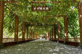 葡萄长廊位于和田县巴格其镇,全县葡萄长廊达1500多公里;利用农田道路建成千里葡 萄长廊,创造了葡萄栽培史上的奇迹,受到中外来宾的高度评价。目前已成为戈壁绿洲的一 大景观。