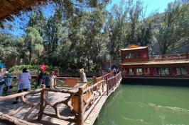 天山天池古称“瑶池”,是以垂直自然景观带和雪山冰川、高山湖泊为主要特征,以远古瑶池西王母神话以及宗教和独特的民族民俗风情为文化内涵,是世界自然遗产,国家AAAAA级旅游景区。由融化的雪水和雨水 积蓄而成,平均水深60米,三面环山,现修有环湖栈道,全长13公里,走下来需5-6个小时。