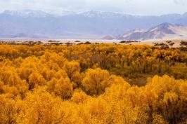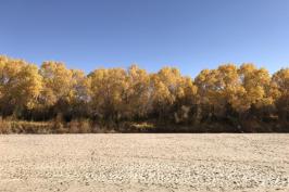 4.南靠巍巍昆仑山脉,北面茫茫戈壁盐滩。格尔木的这片胡杨林,就夹在其中的沙漠地带,显得弥足珍贵。