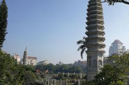 南普陀寺坐落在厦门大学的边上,是闽南乃至全国闻名的佛教寺院。寺庙后就是五老峰,也是厦门八大景之一。寺起源于唐代,清康熙重建,地处普陀山之南,故名南普陀寺。独特的风貌就是:“古朴与摩登并存,小和尚与大学生为邻。”寺庙中的建筑大气磅礴,斗拱精致,美轮美奂。四面都是千手千眼的观音像,金碧辉煌、精美绝伦。