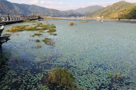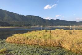 北海湿地保护区四面环山,大片漂浮于水面的陆地犹如五彩缤纷的巨型花毯,绚丽而又神奇。每年的4月中旬至5月,是北海兰花绽放的时节,也是北海最美的季节,空气里飘着草叶的清香,芦苇丛中不时传来嘎嘎的野鸭叫,湖面上不时有游人初踩草排的惊喜叫声。泛舟湖面,宛若置身在大草原,只不过这片“大草原”是漂浮在水上的。