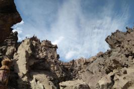 盘吉尔怪石林位于托克逊盘吉尔塔克山脊与山坡,东南距托克逊县城55公里,有公路可通至附近。是由溶蚀和风蚀作用形成的奇特的峰林地貌山岩或似羚羊翘首、天马行空,或似猛兽鬼怪,面目狰狞,或似云朵变幻,壮观有趣。岩石多为石炭纪火山岩和角砾凝灰岩,颜色以青灰色、褐红色多见。