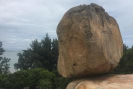 东山风动石一直是东山岛上人民最引以为荣、视如珍宝的自然奇观,是旅游者喜爱的美景之一。东山风动石以奇、险、悬而居全国60多块风动石之最,被古代文人誉为“天下第一奇石”,现在它已经是东山岛的标志性景观。风动巨石耸立在陡崖上,两石的接触面仅为十余平方厘米。狂风吹来时,巨石轻轻摇晃不定,人若仰卧盘石上,跷起双足蹬推,巨石也摇晃起来,但又不会倒下。