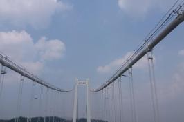 龙江大桥是保腾高速上的一座跨河桥,是中国云南省境内一座桥梁,亦称龙江特大桥。龙江大桥总长2470.58米,桥面宽33.5米,为双向四车道设计,跨越保山市龙陵县龙江乡上邦焕村与腾冲县五合乡大丙弄村之间的龙川江河谷,为单跨简支钢箱梁悬索桥,是保山-腾冲高速公路控制性工程。