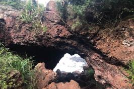 龙门激浪位于儋州市峨蔓镇海滨龙门山。山之东有一瓮门,素称“南天第一门”,高30多米,宽阔20来米,中空通风,岩石呈拱形,北风掀浪,撞于石门,鸣声如鼓,回响10余里,故得名“龙门激浪”。龙门激浪于明代得名,向受游人称奇