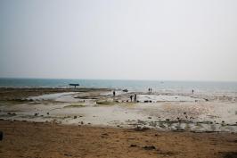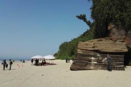 涠洲岛五彩滩 ,原名芝麻滩,是因沙滩上有许多像芝麻一样的黑色的小石粒而出名。退潮后的芝麻滩格外的漂亮,巨大的火山岩石一层一层的,在阳光的照射下特别的壮面。大片大片的火山熔岩裸露出来,特别的宽阔。许多地方虽然海水退了,但还是留下了大片大片的一洼一洼的水,在蓝天的映射下,一洼一洼的水在视线中也变成了蓝色,和裸露的岩石一起,很是迷人。
