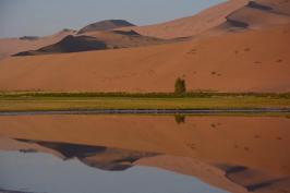 【自由之地】早餐后出发前往中国最美的沙漠-巴丹吉林沙漠。巴丹湖坐落于巴丹吉林沙漠,是巴丹吉林沙漠中为数很少的淡水湖泊之一,风景秀丽,宛如镶嵌在巴丹吉林沙漠南缘的一颗璀灿的明珠。自驾车穿越沙漠硬化公路,在巴丹吉林沙漠优美的曲线中畅玩,晚上宿巴丹吉林镇。