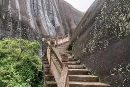 飞天山国家地质公园位于郴州市苏仙区,飞天山以丹霞地貌和喀斯特溶洞为主要特色,素有“南岭福地,湘南明珠”的美誉。主要风景区以寨(堡)为中心、两江河水为纽带、红岩绿水,赤壁丹霞,峡谷奇洞,古木竹海的“四面青山列翠屏”、“草木花光尽是香”的奇妙的丹霞地貌景观。