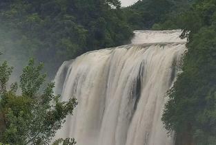 陡坡塘瀑布在黄果树瀑布景区,地势起伏较平缓,但水量依然很大,水声很大,哗啦啦地气势磅礴,落差再大些气势会更大,陡坡塘瀑布与黄果树瀑布的区别就在落差上。