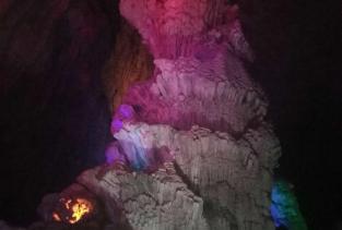 百魔洞是穿过天坑进入后洞,后洞的钟乳石在彩色灯光的照耀下更为壮观。二、三楼的钟乳石有的象瑰丽多姿的皇帝宫殿、谜魂宫,有的象航行在海上的帆船有舸争发,有的象神仙……总之这个洞里的钟乳石多姿多彩、形态各异,让人充满了想象!