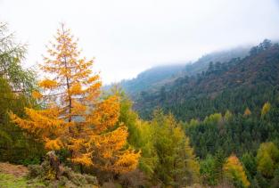 位于雅安宝兴县的神木垒景区,夏天特别凉爽,秋天的景色特别的美,种木垒景区的树木是落叶松和针叶松的混交林,秋天的时候翠绿和金黄相间,特别是金黄色,在阳光的照射下,非常好看!