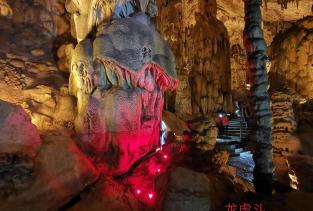 织金洞是贵州省第一个世界地质公园,它位于织金县官寨苗族乡六冲河南岸。六冲河是乌江的源流之一。沿着石阶前行,眼前出现不少石壁书法,穿过一条石板路之后,我们来到了织金洞的洞口,一股清凉之气迎面袭来。织金洞共有迎宾厅、讲经堂、广寒宫、万寿宫、灵宵殿等大厅和景点。溶洞洞中有洞,别有洞天,各种景观还在不断的生长和演化中。
