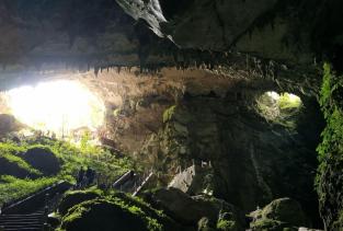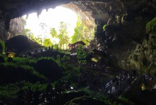 织金洞检票后,首先会看到的是一段名人石刻廓道。看着小道两旁的岩石刻着的名人们对织金洞的评价,虽然已知织金洞世间罕有,但也更加抱有期待。不过,织金洞景区的环境是不得不得赞叹的,即使已临近五月初夏,这里的温度还是十分清凉,沿路凉风阵阵,所以建议进洞时穿一件外套。