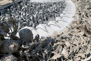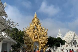 白庙这个景点非常的值得去看,虽然路程有些远,但是白庙的景点是由泰国特别著名的美术大师毕生的心血创作的,做工之精细之美无法用语言来表达的。不愧是蓝庙的师父,设计师对中国文化有涉猎,很崇尚西方文化,东南亚做根底化繁复为简。