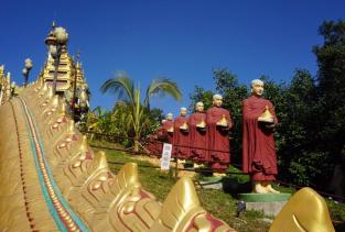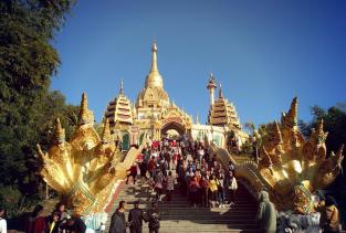 勐焕大金塔就位于芒市,在赤裸裸的太阳下,更显得光灿夺目。围着大金塔转一定要按顺时针,转上三圈,然后入殿看看,虽然不大,但是很有充满了异域风情。绝对值得一去的景点。很有宗教意义,祈福求平安圣地。