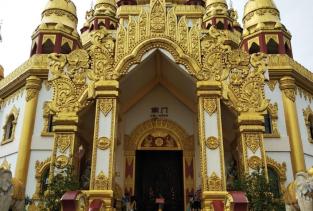 勐焕大金塔总的来说是可以一看的地方。勐焕大金塔位于德宏芒市孔雀湖附近的山上。大金塔很漂亮,里面充满了浓郁了的西南佛教特色。大金塔对面是大银塔,晚上去看效果最好,不过只有泼水节才能进去。