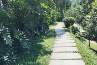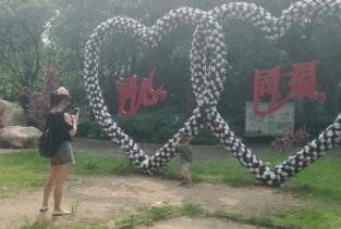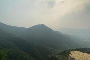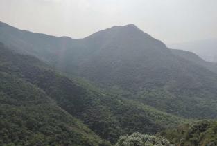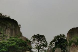 粤晖园全是台阶上山。一般到鹰嘴崖就可以了,我们以为能爬到飞云顶,结果又往上爬,走完了台阶路,又走了一段山路,看见一块牌子,此处距飞云顶2800米,果断放弃,原路返回。