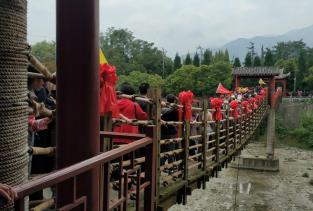 安澜索桥是都江堰连接鱼嘴两岸的必经吊桥,由于每天经过这里的游客非常多,所以吊桥做了很多的加固,很多游客都不太自觉,可能是看综艺节目看多了喜欢在桥上乱摇。完全忽视了桥上的安全。