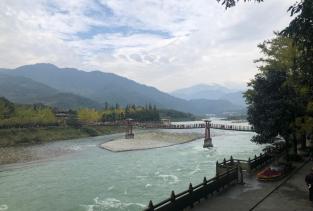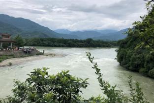 都江堰风景区值得一看,看看这个伟大的水利工程,古人真的是很有智慧,从那个鱼嘴上来说,那个分出去的水都是4/6分,水大的时候内江是4,水小的时候内江是6,不是人控制的,是水自动的。