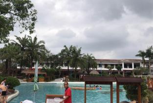 锦江温泉环境好,空气清新,陪家人度假休闲一流,池大活动地点多,我陪儿子们过来,还有水上蓝球场,儿童滑梯,陪他们玩得超开心。环境还不错。网上订的票很划算。去到再购买要138,好贵。里面的宾馆好贵,一晚就要730,最后还是决定出去再找地方。