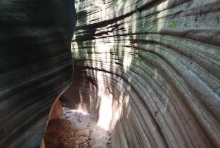 从延安租车出发去甘泉雨岔大峡谷,开了三个多小时,到达目的地时全是悬崖峭壁,小心驾驶哦。景点门口有租雨鞋的,一定要租,因为地下有积水会粘上好多泥,有的地方很窄,胖点的人过不去就可以返回了,有的峡谷比较长,有的就比较短很快回来。