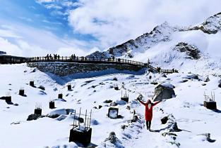 达古冰川的美确实是震撼壮观的,它有世界海拔最高的索道,有世界最孤独浪漫的咖啡馆,是世界海拔最低面积最大最年轻的冰川,确实值得一去。我们还偶遇了今年的第一场大雪,算是意外的收获了。