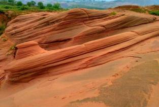 波浪谷叫靖边红沙岩峡谷,位于陕西靖边龙州。美丽的红砂岩地质,给人带来不同的震撼。红色石头像泥石流一样,呈现流水状,形状各异。一圈圈、一坨坨、一弯弯不断变化,绵延几公里,仿佛波浪翻滚。极具美感的画面,富有强烈的视觉冲击力,令人惊叹大自然的鬼斧神工!