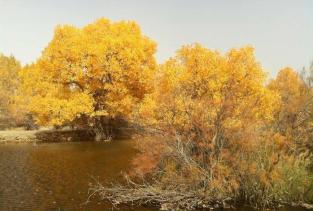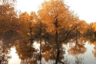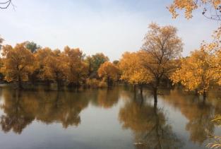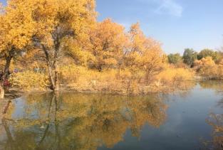 金塔胡杨林很惊艳,满目的金色倒映在湖面上,都分不出嘛边是真实,哪边是虚幻的!不枉专程绕道过去看