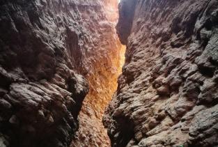 行走在库车大峡谷,红色刺眼的岩如同在火焰一般,你就是虽火焰跳跃的舞者。更美的是,某段裂谷,一片蓝天,置身处地的感受到了什么才是一半是海水,一半是火焰。当然,走完整个大峡谷是需要勇气的,水姚带够,万一没水了,谷中有几处天然泉眼,这也算是造物主的造化吧。