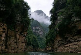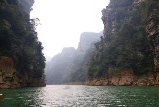 圣堂湖坐的是竹排游湖,湖夹在两座山中间,风很大,适合夏天游玩,山上有雾。湖水青,山峰险,这里的石也很独特,真的是世外桃源。就是船上没有导游,稍显无趣。去之前几天一直下雨,从上游冲下来很多垃圾。