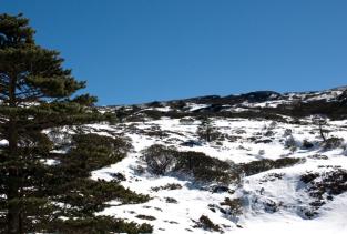 轿子雪山最高处自己松拓手表测得大概4200多,可以看到海拔不同的各种地貌。下面说一下注意事项:因为雪山嘛,当然是要冬天去爬了,昼夜温差相当大,早上起来车子表面都结冰了;一定要戴墨镜,如果近视眼也请配变色镜片,裸眼你是受不了的,女友没戴墨镜回家后流了好几天眼泪,真的会瞎;做好防嗮,在高山雪线以上紫外线真的很强很强;平原过来的朋友请购买氧气并量力而行。