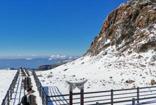 大冬天去一定要注意保暖,爬山节奏不要太快匀速前行,要不然高反起来氧气瓶都救不了你,鞋套手套提前买好(景区有点贵),冰爪基本不用(都是人工栈道)吃的带够,早上第一趟上去基本要下午两点左右才能到摆渡车站,能坐缆车就不