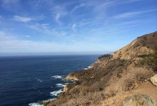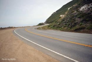 加州一号公路是沿太平洋海滨修建的一条公路,从墨西哥往北一直延伸到加州北部,是一条风光如画的海滨公路。由于得天独厚的地理环境,她的一边是碧波万顷的太平洋,一边则是陡峭高耸的悬崖山脉,风景美不胜收,被称为美国最美丽的一条公路。在旧金山和洛杉矶两大城市之间,美国一号公路连接了数个明珠一般的小镇,它们散落在太平洋沿岸,以幽静和殊美的环境著称。这些小镇大多有著名的海景公路和无敌沙滩,景色一流。在美国一号公路开车,就犹如走在天堂的路上。的确如此,今天,虽然遇到大雾天气,行驶路途中依然景色迷人,我们不停的停车观赏。