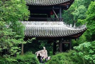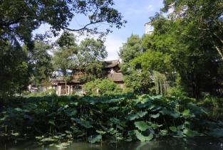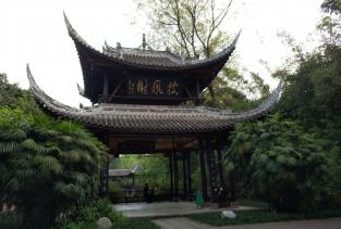 三苏祠蜀中名胜,宋为苏家五亩小园,元代改宅为祠,明代增修扩建,明末毁于兵火,仅存五碑一钟。清康熙年间重建,民国以后不断增修扩建,由原来的五亩宅院增至百亩,其主体建筑为清代建筑群,园内清幽雅静,棵棵见证历史的百年古树隔绝了城市的喧嚣