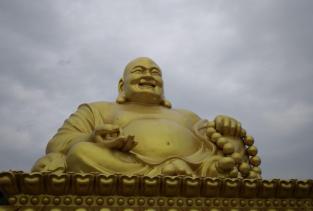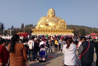 弥勒市的弥勒寺是一个扩建没有多久的,一个专供弥勒菩萨的寺庙,有新建的露天的弥勒菩萨,金光闪闪,号称有1999级台阶,吓人一大跳,游客都坐车上山了,实际台阶一半还不到。走台阶根本不累。