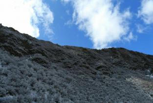 米拉山是川藏公路的最高点。从这五千多米的云端俯瞰,有种高处不胜寒的味道。凛冽的寒风吹在脸上,湿凉凉的叫人不禁想打寒战。这里的空气似乎更加稀薄。