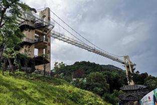 水晶桥就在客天下的风雨桥旁边的路口上去,这边可以直接开车过来售票处这边还是比较方便,但是要另外付门票,就算是酒店住户的话,也要40多块钱一个人。小孩说很好玩,下次还想去