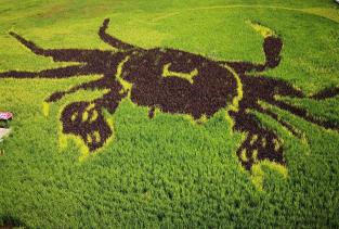秋天,是盘锦红海滩,最漂亮的季节,这里的碱篷草都红了,大片大片的,很漂亮,有很多小螃蟹,在这里穿行,可以租个小桶,钓螃蟹的,