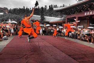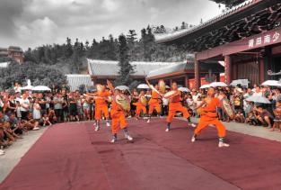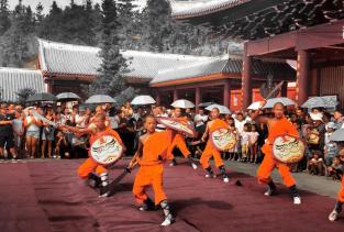 看了南少林点评本来要放弃的 小的一定要去 盘山半小时 景色果然很普通 刚停车 一群阿婆上来兜售香烛 热闹程度和点评不大一样 看得出寺庙在扩张 进门后发现武术学校有表演 还真精彩 当天有三场 南武僧的传说真是名不虚传啊!