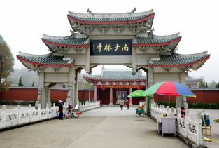 南少林寺位于莆田荔城区西天尾镇九莲山林山村,距莆田市区约17公里。南少林寺前身名“林泉寺”,建于南朝永定年间(公元577年),唐初因十三棍僧救唐主有功,太宗皇帝特敕北少林昙宗方丈,在南方建少林寺,称为南少林寺。至清初,因反清复明被夷为平地。直至1986年,考古学家挖掘发现南少林寺遗址,这才让其呈现在世人面前。莆田南少林寺重建现已初具规模,大雄宝殿、天王殿、钟鼓楼、山门以及赵扑初题额的 “南少林”牌坊等,巍峨壮观,金碧辉煌。