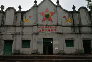 二苏大景区——1933年8月动工,年底竣工,是中央二大会议旧址。1956年按原貌重修,大楼后有防空洞。大楼设计大气,能容纳500人参会。
