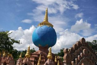一寨两国完全的一个自然村,地跨中缅两国,临近的还有缅甸的两个村落,这几个村落可以互相走动。 除此之外,又修了不少的现代景点,不过都是一些佛教的景点,讲述释迦摩尼得道的故事,不过还是果园更吸引我,第一次看到火龙果树。